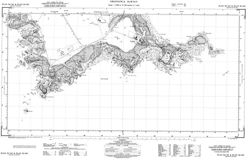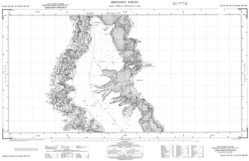 We have been fortunate to acquire a set of 1967 1:2500 (25") Ordnance Survey maps of Lundy, donated from the estate of Chris Mandry. These have been scanned and provided to view here. You can mouse over or long-touch the images to magnify.